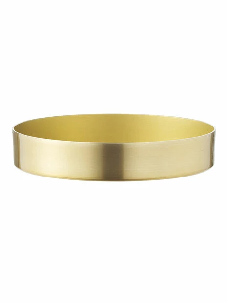 Stilren, messingfarget fat i aluminium. Finnes i mange ulike størrelser.