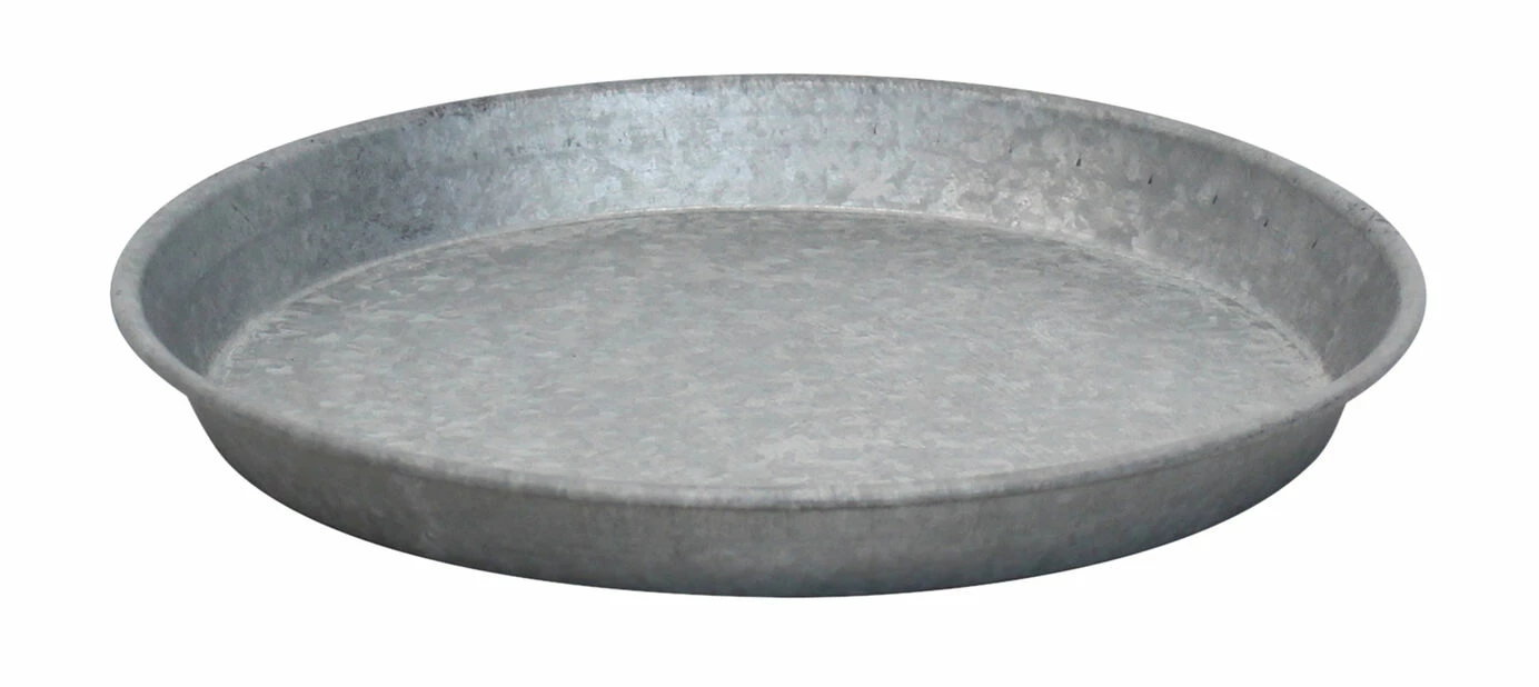 Rundt, vanntett fat i matt sink som beskytter terrassen mot fukt og søl fra utepotter. Passer også til innendørs bruk. Diameter 28 cm. Fås i flere størrelser.
