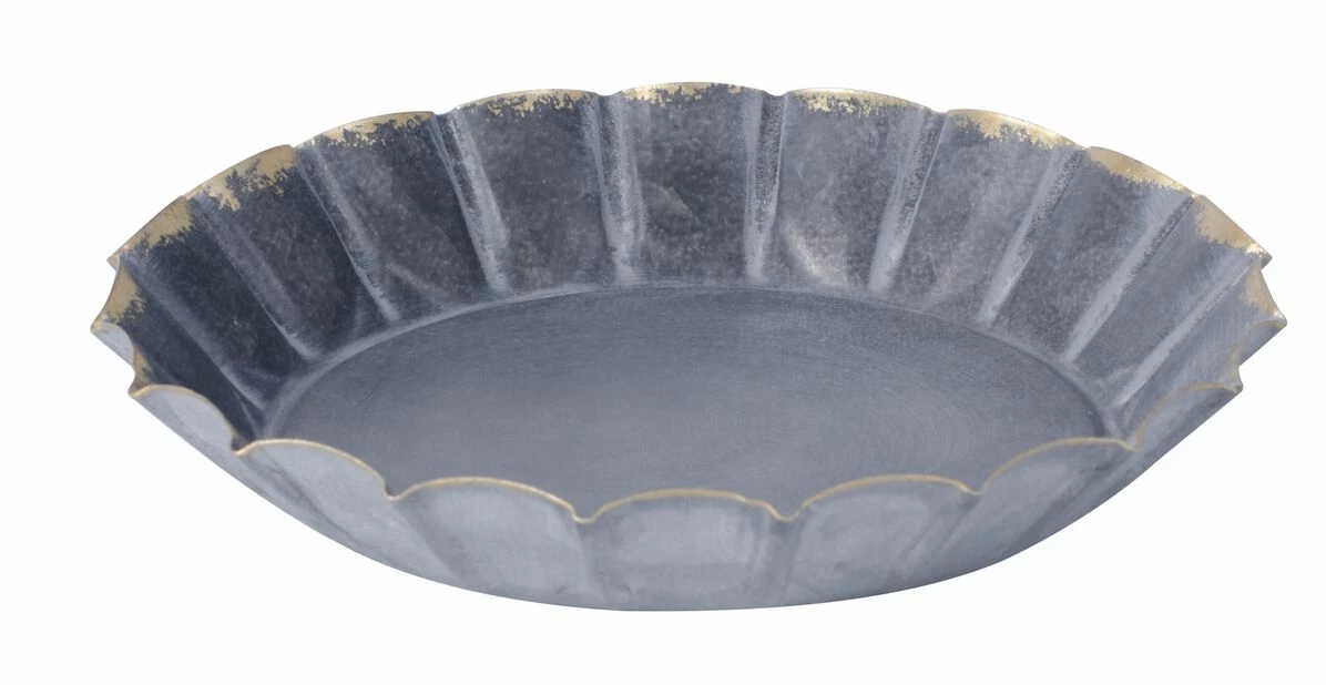 Vakkert patinert sinkfat med brettet kant. For innendørsbruk. Finnes med diameter Ø18, Ø23 og Ø27 cm.