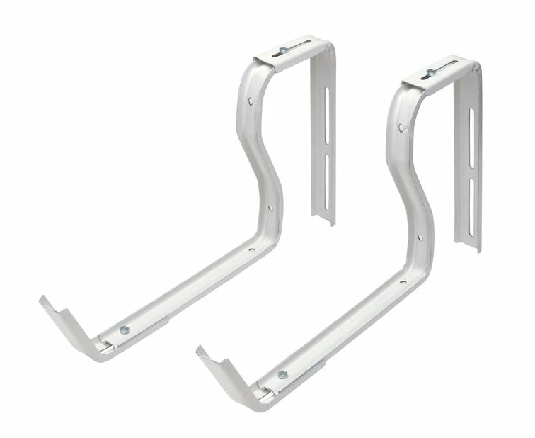 Fleksible braketter i lakkert metall, for hengende balkongkasser. Selges parvis og lengden kan justeres avhengig av størrelsen på balkongkassen og rekkverket. Passer til både runde og firkantede rekkverk.