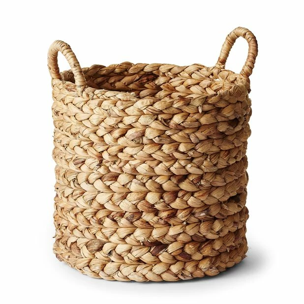 Moderne, håndlaget kurv i naturmateriale med håndtak som passer perfekt til større inneplanter. Kurven er laget av flettede vannhyasinter. Potten har en tynn plastinnsats, men den bør kombineres med en tett innerpotte, et potteunderlag eller vanntett fat som beskytter mot fukt på underlag. Ø 30 cm og 30 cm høy, passer til planter med pottestørrelse Ø 24 cm.