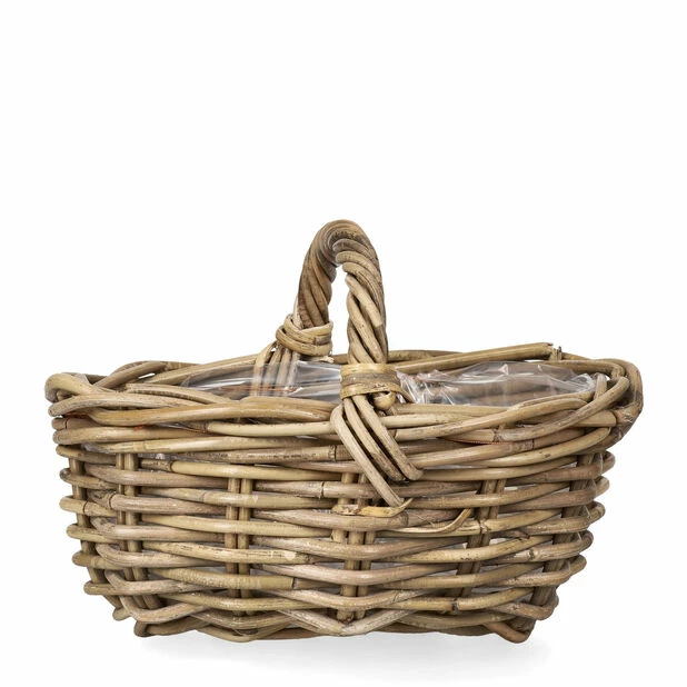 Klassisk kurv i tradisjonell design med rotting, håndtak og plastfôr. Plant løk, urter og sesongblomster i en vakker kurv! Fås i tre ulike størrelser, kan brukes både inne og ute.