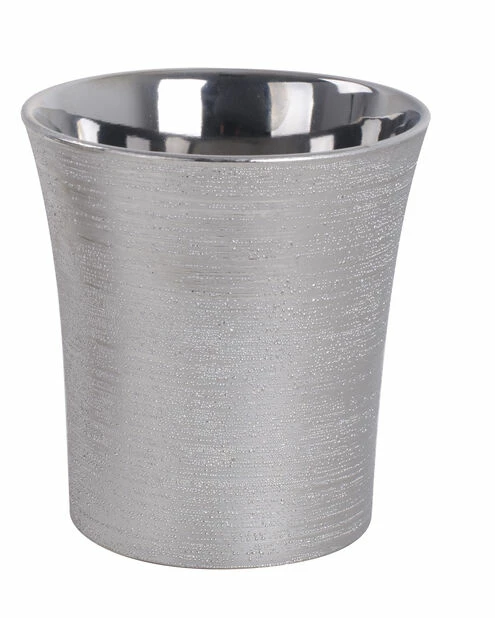 Moderne, sølvfarget potte med riflet mønster som passer utmerket til amaryllis. Diameter: 16 cm, høyde: 15,5 cm. Passer til innerpotte med diameter 13 cm.