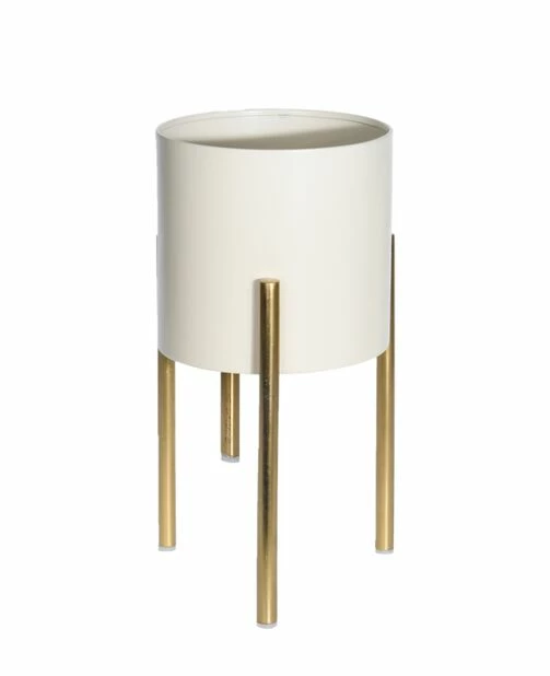 Fin potte i metall opphevet på gullfargede ben. Vanntett, uten dreneringshull og passer til innendørsbruk. En luksuriøs interiørdetalj til alle moderne hjem! Mål: Ø15,5 cm, høyde: 29,5 cm.