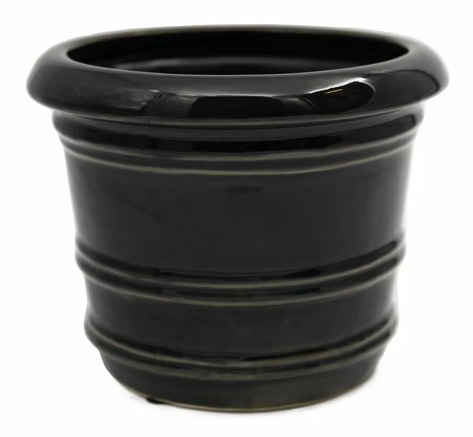 Flott, rund og klassisk potte med dekorative riller. Fremstilt av keramikk med blankglasert overflate. Beregnet til innendørsbruk. Mål: Ø21,5 cm, høyde: 16,5 cm.