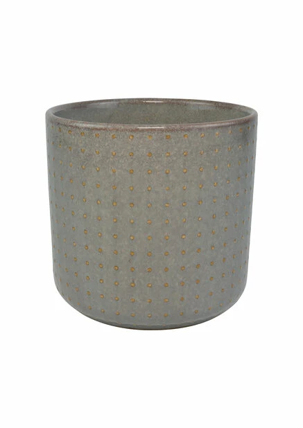 Rund keramikkpotte i en delikat, blå nyanse, med et prikkete relieffmønster. En romantisk potte med en vakker, krakelert glasering. Diameter: 15 cm, høyde: 14 cm. Passer til innerpotte med diameter 12 cm.