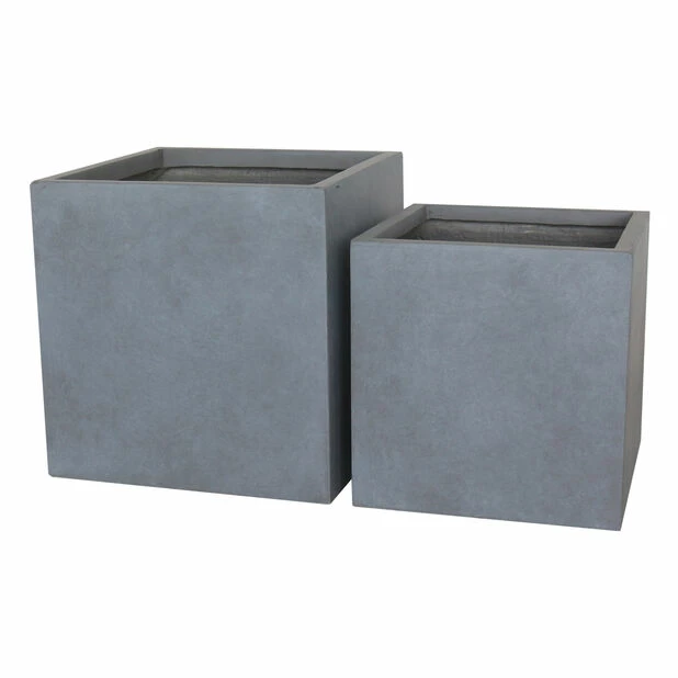 Moderne, firkantet potte i minimalistisk stil. Produsert i fibreclay, en blanding av sement og glassfiber. Dette gjør at potten er lett, vanntett og frostsikker. D 40 cm x H 40,5 cm.