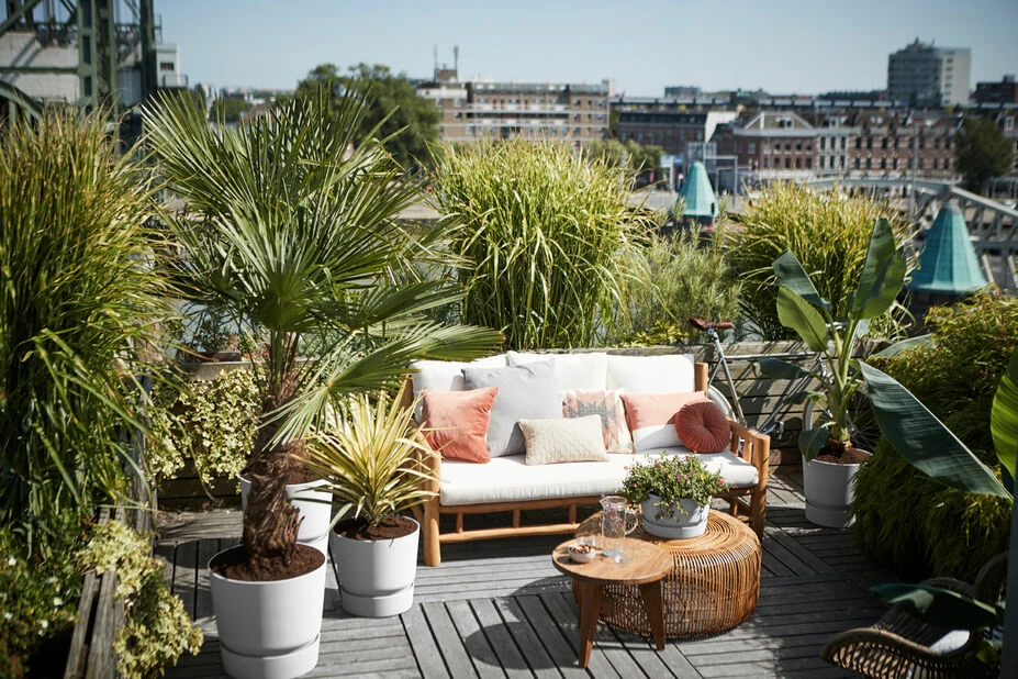 Pen og praktisk potte fra Elho med innebygd fat og vannreservoar. Fremstilt av resirkulert plast med strøm fra Elhos eget vindkraftverk. Frostsikker og UV-bestandig. Ø 47 cm, høyde 44 cm. Garanti 5 år.