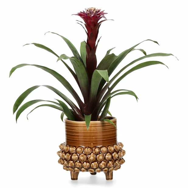 Tilfør hjemmet en følelse av ro og eleganse med denne potten og dens stilige konturer! Potten Elin har en glasert overflate med boblete form nederst og blank, stripete form helt øverst. Den har også stilige ben som løfter opp favorittplantene dine enten om det er i stuen, på soverommet eller til og med på badet. Med blomsterpotter i ulike former, farger og materiale kan du enkelt gi hjemmet ditt en personlig og lun atmosfære. Innred med planter i stuen, på badet – ja hele hjemmet og la deg inspirere av mange vakre blomster i fine potter!