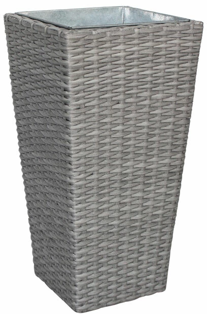Moderne, firkantet potte i kunstrotting med innerpotte i sink. Fin til rottingmøbler eller med andre potter, kasser og ampler fra den store Frankfurt-serien. Bredde øverst: 40 x 40 cm, høyde: 75 cm.