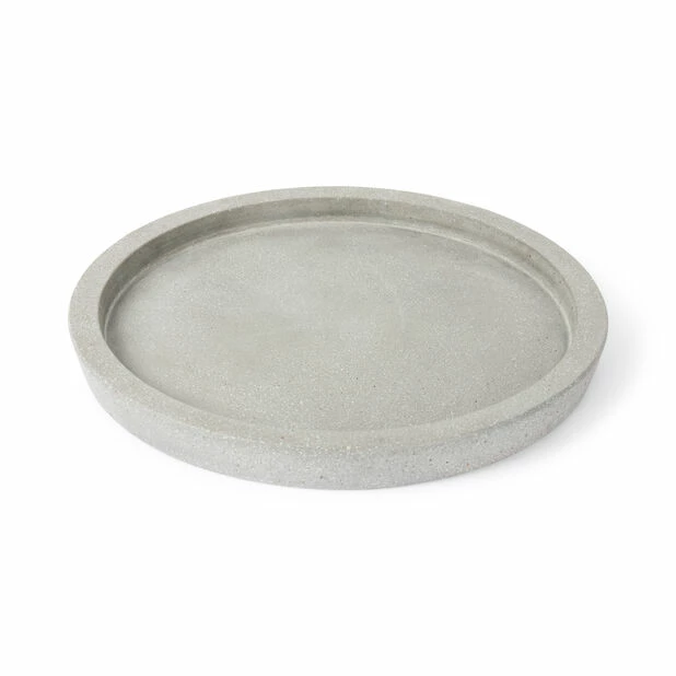 Moderne og stilig potte til utendørsbruk i frostsikker lettvektssement med hull for drenering.