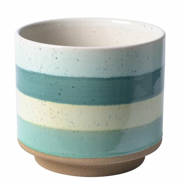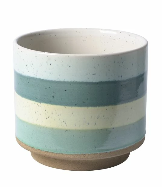 En moderne potte i glasert keramikk og trendy farger som fremhever plantene dine. Håndmalt potte hvor hver potte er unik. Ø 17 cm og 15 cm høy, passer 14 cm innerpotter. Vanntett potte til innendørs bruk.