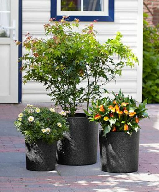 Praktisk utekrukke som er perfekt til alle slags blomster, planter og urter i entreen, på balkongen eller på terrassen. Kan stå ute året rundt. Krukken er laget av polypropylen, som er et svært slitesterkt og UV-bestandig materiale. Den er frosttolerant og isolerende og beskytter plantenes røtter mot kalde vintre og varme sommere. Tåler temperaturer fra 40 til +50 °C. Perfekt til stauder, busker og mindre trær som tåler vintertemperaturer. Har du plantet sommerblomster eller urter, kan du i stedet for å rydde bort krukken for vinteren, forberede våren ved å plante løk om høsten, så får du flotte blomster neste vår. Hvis du har plantet sartere trær, busker eller stauder, kan det hende de trenger ytterligere beskyttelse om vinteren. Sett dem på et lunt sted inntil veggen. Krukken er lett å flytte på. Skader ikke terrassegulvet eller hageplattingen. Du kan lage hull i forhøyningene i bunnen av krukken, og gjerne også drenere med et lag lecakuler. Velg riktig størrelse på krukken til det du skal plante. Bruk skål på underlag som kan ta skade av vann og søl. Krukken er miljøvennlig og resirkulerbar og består delvis av resirkulerte materialer.