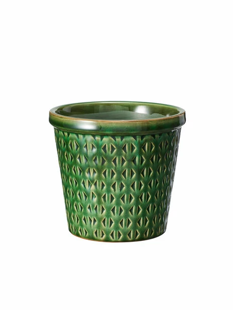 Keramikkpotte i flott grønngardert blank glasur med fint strukturmønster. Potten er vanntett og fås i to størrelser. Mål potte Matteo: Ø 13,5 cm og høyde 13 cm, passer til planter med pottestørrelse Ø 12 cm.