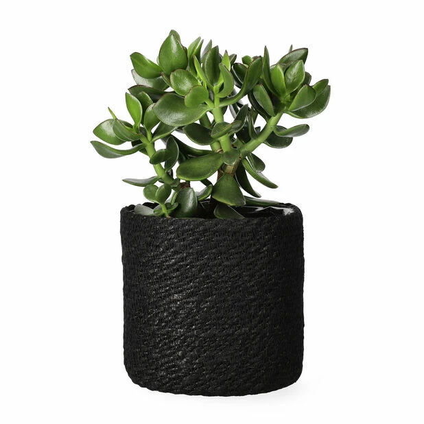 Stilig flettet kurv som forener det klassiske med det moderne. Perfekt som både potteskjuler og til oppbevaring. Beregnet til innendørsbruk. Potten har en tynn plastinnsats, men den bør kombineres med en tett innerpotte, et potteunderlag eller vanntett fat som beskytter mot fukt på underlag. Mål: Ø16 cm, høyde: 16 cm.