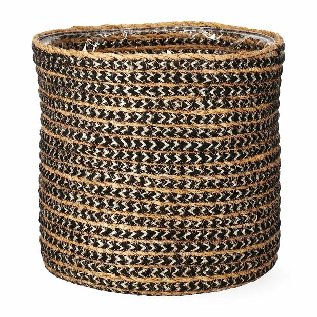 Stilig flettet kurv som forener det klassiske med det moderne. Perfekt som både potteskjuler og til oppbevaring. Beregnet til innendørsbruk. Potten har en tynn plastinnsats, men den bør kombineres med en tett innerpotte, et potteunderlag eller vanntett fat som beskytter mot fukt på underlag. Mål: Ø20 cm, høyde: 20 cm.