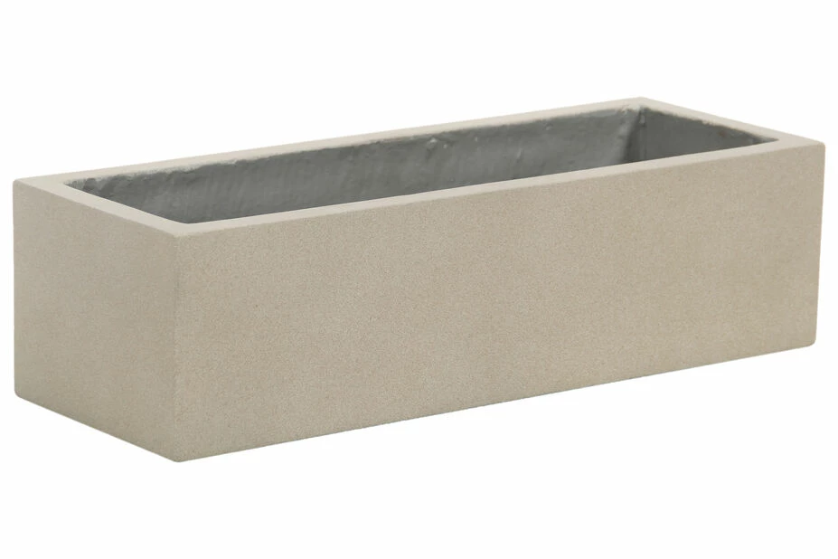 Moderne og stilig plantekasse til utendørs bruk, i frostsikker lettsement med dreneringshull. Lengde: 84 cm. Nova-fatet med lengde 84 cm passer her.