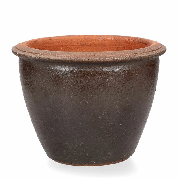 Tradisjonell og stilig utepotte i keramikk med brunt, rustikt retrodesign og matt finish. Beregnet til utendørsbruk. Diameter: 21 cm, høyde: 17 cm. Frostsikker med dreneringshull i bunnen.