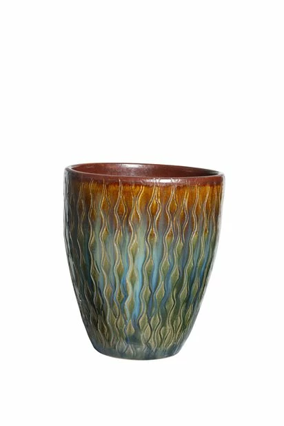 Gi uteplassen, terrassen eller inngangspartiet et hint av retro! Potten Tate er flott, høy keramikkpotte med stilig bølgemønster og fin tekstur i friske farger som gir plantene den oppmerksomheten de fortjener! Tate er perfekt for å piffe opp sesongens blomster og planter utendørs på terrassen eller ved inngangspartiet med det lille ekstra som gir både deg og gjestene en hyggelig velkomst! Potten har dreneringshull i bunnen og er først og fremt beregnet til utendørsbruk. Den er frostsikker, noe som betyr at den tåler lave temperaturer så lenge det ikke er for mye vann i den når frosten kommer. Vann som fryser utvider seg, og potten kan da i verste fall sprekke. Se derfor til at det er luft mellom bakken og dreneringshullet og at det ikke er for mye vann i den vinterstid. Plasser gjerne potten under tak eller frostfritt innendørs om vinteren.