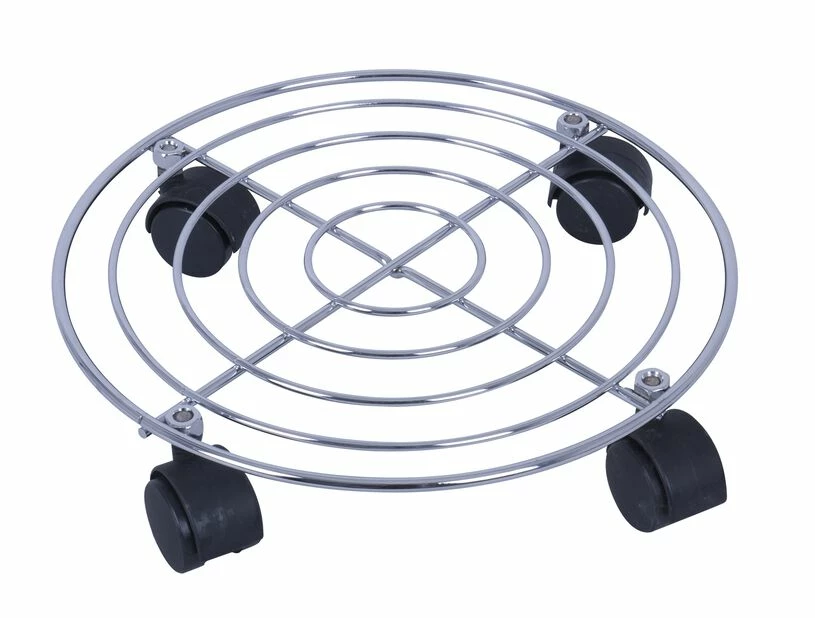 Solid pottetralle av stål med plasthjul. Gjør det enkelt å flytte tunge potter og store planter. Til innendørsbruk. Maksvekt: 40 kg.